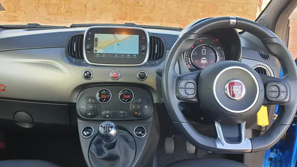 With its bold Sport trim, the Fiat 500 stands out with unique styling cues such as a sleek front bumper, a distinctive honeycomb grille, and sporty alloy wheels. Inside, the cabin features a driver-focused layout with contemporary touches, including a 7-inch touchscreen infotainment system with Apple CarPlay and Android Auto integration, ensuring you stay connected while on the go.